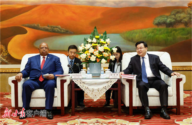 省委书记、省人大常委会主任胡昌升5月15日下午在兰州会见了津巴布韦众议长穆登达一行。
