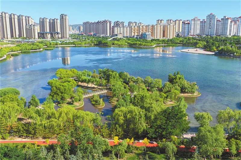 依托引洮工程建成的定西湖公园绿植环绕,水面清澈如镜。(本版图片摄影:记者郁婕 丁凯)