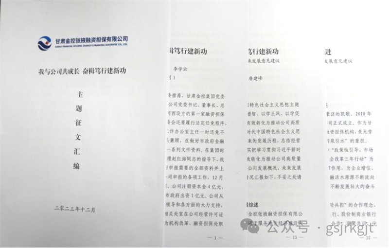 三、印制一本社会责任报告报告分为金控张掖担保发展篇、政治建设篇、内控管理篇、服务企业篇、风险管理篇、团队建设篇、社会责任篇及展望八个篇章,提炼了五年来公司改革发展、经营管理、服务实体经济等方面的亮点做法。通过印制社会责任报告,进一步拓宽了对外宣传媒介载体,展现了公司服务地方经济发展的做法成效,起到了较好地宣传作用。