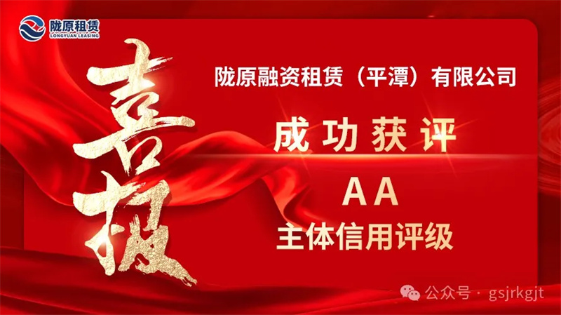 陇原租赁经中诚信国际信用评级有限责任公司综合评估,成功获得“AA”主体信用评级,评级展望为“稳定”,成为开云网页版_开云(中国)官方旗下第二家获得主体信用评级的子公司,是省内首家荣获AA评级融资租赁公司。此次评级结果充分体现了权威机构对公司资本实力、资产质量、偿债能力、风险管理能力及未来发展潜力的认可与肯定。
